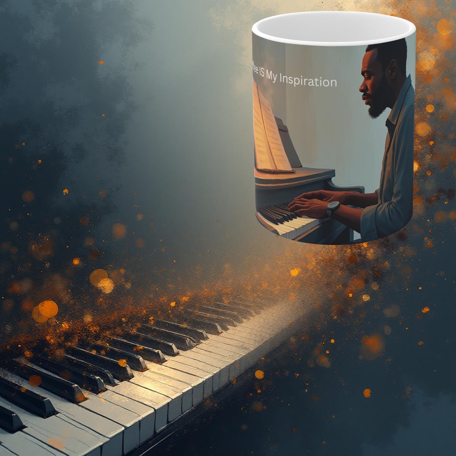 Coffee IS My Inspiration Mug – Thoughtful Gift for Mature Musicians, Piano Players, Creative Men